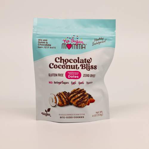 Ingredients: Unsweetened shredded coconut, non-refined coconut oil*, almond flour, date sugar*, vegan chocolate chips sweetened with dates*, raisins, unsweetened applesauce*, almond butter, water, vanilla extract*, Himalayan salt, almond extract*